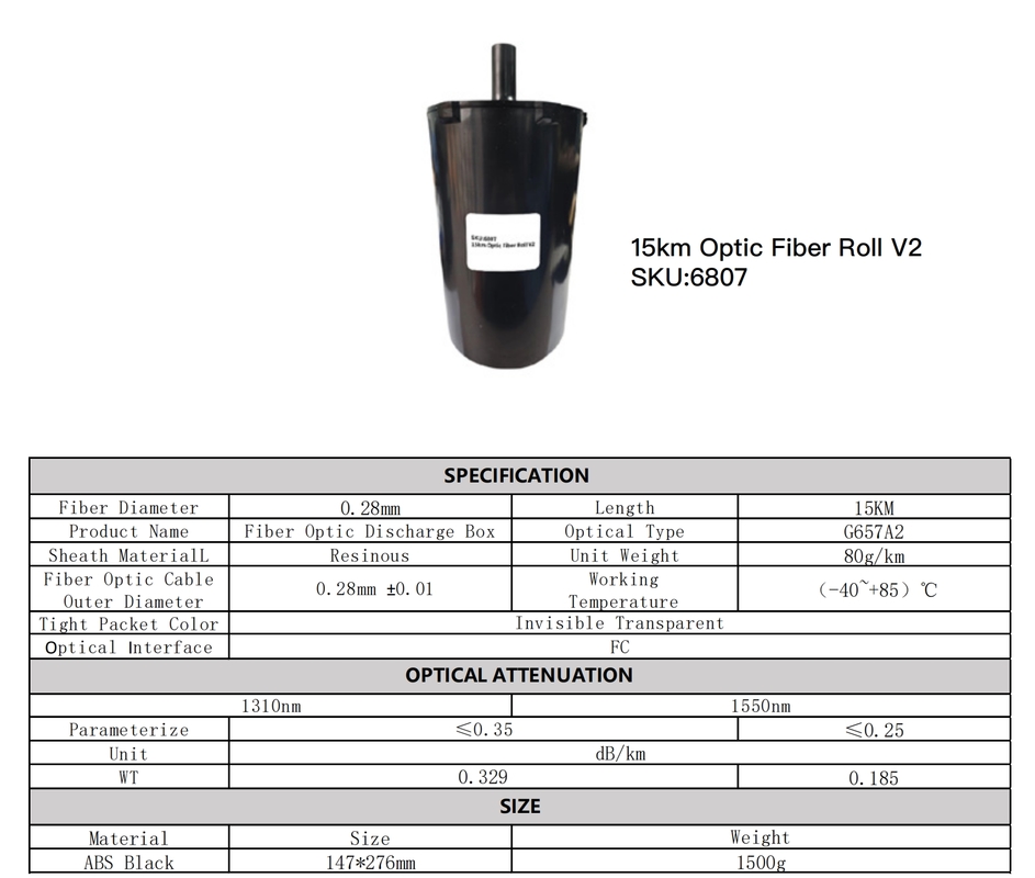 FPV 섬유 10km- 코팅 0.28mm-내부 Pay-off 야외 항공 광섬유 케이블은 야외 사용에 설계 된 고품질 단일 섬유 케이블입니다.이 케이블은 신뢰성 높은 장거리 통신 용도로 특별히 제작되었습니다..